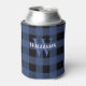 Rustic blue buffalo check can cooler with your initial in pale blue and last name in white.