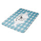 Add a rustic touch to your bath decor with this Blue Buffalo Plaid Farm Cow Bath Mat. Bath mat design features a farm cow on an elegant tag and custom text for you to personalize with your family name against a gingham pattern background. Additional home decor items available with this design.