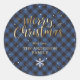 Blue Buffalo Plaid Gold Snow Christmas Classic Round Sticker