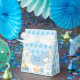 At the heart of this party, Favor Boxes charm are the delightful baby elements – a gentle pacifier, a classic baby bottle, and adorable stuffed animals like teddy bears and ducks, each symbolizing the innocence and wonder of a new life. The blue balloon pattern adds to the charm.