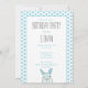 Plain white envelopes are included with paper invitations and will come to fit the invitation size you select. If you don’t need the envelopes, you may choose to not receive them by selecting the dropdown below "Envelopes" and choosing "None." If you’d like to have a design on your envelopes, you can browse all of these available envelopes to find the design that complements your Blue Bunny First 1st Birthday Invitation.