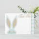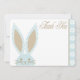 This is a cute thank you card. It features a bunny rabbit in a pastel blue color with brown features. There are white daisies on a blue background on the rabbits ears and on the side. To customize this card just click on the customize button. The back of the card is blank so you can add additional information.