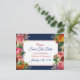 Blue Burgundy Floral Save the Date Postcard