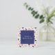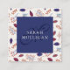 Charming square business card in blue and burgundy and orange featuring a pattern of leaves, berries, and twigs. Add your name and initial to the cover.