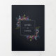Trifold wedding invitation you can personalize with two photos, your wedding website, and your special dates. The folded wedding invitation features greenery in a deep color palette perfect for a fall wedding or winter wedding with leaves, twigs, and berries in blue, burgundy, and olive green against a dark background.