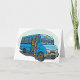 This design is of a blue bus done in a fun style. The bus is mostly blue with a yellow trim in places. This blue bus design looks great on this Greeting Cards