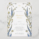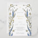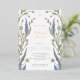 Rehearsal Dinner Foil Invitation with a frame of elegant branches with blue buttercup and leaves. Hand drawn abstract blue delicate flowers leaves on white background. Romantic floral nature background. Abstract nature branches. Spring or summer floral design. Botanical plot. Soft blue botany Rehearsal Dinner Foil Invitation. Blue Buttercup Collection.