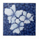 Watercolor painting Blue Buttercups on dark mosaic pattern blue geometric shapes.