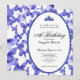 This elegant blue and white 18th birthday invitation has blue butterflies, a blue tiara crown, and a blue glitter oval with a personalizable template to create your own message. The invitation template is customizable in the listing editor and is also available as a digital download that's printable after you personalize it. It's a classic style that's perfect for a family event to celebrate a milestone birthday.