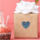 Sweet blue butterflies on a haert shaped sticker with a silver background.