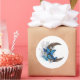 Blue butterflies on wooden crescent classic round sticker