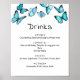 Blue butterflies. Whimsical wedding Drinks menu Poster