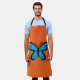 Great color and even though I ordered the kid size, it covers well enough to use during the holidays. I am not a big woman and prefer a shorter apron. I stand 5"6" and the length of the garment goes to mid-thigh. The tie straps fit well at my waist and even though there is no neck strap adjustment, the opening is plenty big enough. I am happy with the size and fit. I am sharing my apron with my 10 year old grandson, too! The color is vibrant and looks good, as shown on the website. The stitching looks strong and reinforced. Photographed is front side and back side of the apron, reinforced straps and coloring. My phone camera may not be the best at showing the details.
