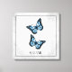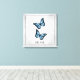 Add an elegant touch to your bedroom with a Blue Butterfly Floral Personalized Canvas Print. Print design features a pair of vibrant butterflies resting on a white floral vine against a light gray grunge background. Additional gift items available with this design as well.