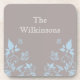 Sweet and dainty Butterfly Floral Coaster Set with a muted dusty gray background and light blue butterflies and floral vine embellishments. This elegant floral cork coaster set would complement any decor while protecting your furniture! Easy to customize, simply add the personalized text of your choosing in the text fields provided. Click on the "Customize It" button to find additional personalization options.