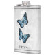 Enjoy your favorite alcoholic beverages anytime with a Blue Butterfly Floral Vinyl Wrapped Flask. Flask design features a pair of vibrant butterflies resting on a white floral vine against a light gray grunge background. Additional gift items available with this design as well.
