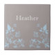 Sweet and dainty Butterfly Floral Tile with a muted dusty gray background and light blue butterflies and floral vine embellishments. This elegant floral tile would complement any decor! Easy to customize, simply add the personalized text of your choosing in the text fields provided. Click on the "Customize It" button to find additional personalization options.