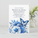 Blue Butterfly Flowers Elegant 100th Birthday Invitation