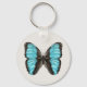 Blue butterfly keychain with a digital drawing which showcases the beauty and elegance of one of nature's most stunning creatures - the Blue Morpho butterfly. The artwork captures the essence of the butterfly's iridescent blue wings. The background of the artwork is kept simple, with a muted white color that contrasts the vibrant blue of the butterfly's wings. It is a perfect addition to any entomology and insect art lover's collection and a tribute to the awe-inspiring beauty of the natural world.