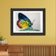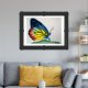 This print is a colorful rendering of a butterfly in blue, orange and yellow. Original painting was created in acrylic on paper.