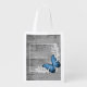 Bag your groceries in style with a Blue Butterfly Rustic Personalized Reusable Grocery Bag. Bag design features a vibrant butterfly resting on delicate foliage with a space to add your name against a rustic wooden background. Additional gift items available with this design as well as a variety of colors.