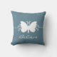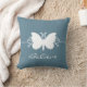 Sweet and simple Butterfly Swirls Mojo Pillow in blue featuring a lovely butterfly silhouette and swirl border. This lovely cushion may be customized with the personalized text of your choosing. This pretty butterfly pillow is girly and stylish and would make a lovely touch to any decor! Click on the "Customize It" button to find additional personalization options.