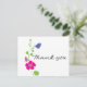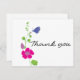 Blue Butterfly Thank You Card features hand drawn pink flowers with green foliage and blue butterfly.
