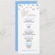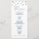 This is a blue butterfly themed baby shower menu. The design consists of a blue butterfly and silver glitter theme.