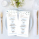 This is a blue butterfly themed bridal shower menu. The design consists of a blue butterfly and silver glitter theme.