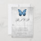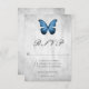 Elegant and simple Wedding Response Card featuring a blue butterfly against a gray grunge background. This trendy design is a unique choice for a modern wedding. Easy to customize with your wedding details. Click "Customize It" to find more personalization options.