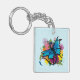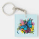Blue Butterfly Winged Dragon Colorful Flowers Keychain