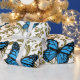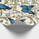 Blue Butterfly with Golden Leaves Wrapping Paper