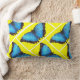 Blue Butterfly Yellow Background Lumbar Pillow