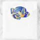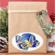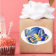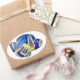 Here's a smiling cute blue butterfly fish on an oval sticker. With bright orange red spots and two shades of blues with gold, it is a cartoon design of the raccoon butterfly fish found in tropical reefs on islands such as Hawaii or Tahiti. Personalize this sticker to create your own message, for a label or gift tag.