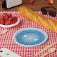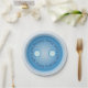 This paper plate is embellished with a custom circular text set against a light blue graphic button design that coordinates with items that feature my buttons and sewing needles pattern.
