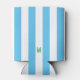 Blue Cabana Stripe & Personalized Green Monogram Can Cooler