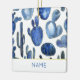 Watercolor Cactus Pattern in Dark Blue, Gold trim on white background with custom NAME in blue. Easy to personalize text, text color, font. Great for ANY desert occasion, cactus lover, party favor, wedding Party, bachelorette weekend souvenir. Modern, Colorful, Fun. Mix and match entire Cactus Collection by TMCdesigns.