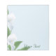 A graphic illustration of calla lilies by artist/designer Charmaine Paulson on a notepad. The notepad has a text template for your personalization.