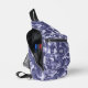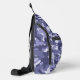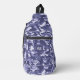 This bag features a delightful camo style pattern in tones of blue, gray blue, and off white. Your triple letter monogram is in white within a matching blue circle banner on the pocket.