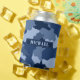 These personalized can coolers feature a camouflage print pattern perfect for friends and family that love camo. This trendy pattern includes the colors of navy, pale blue, and medium blue. Customize with a name in pale blue stencil typography. Designed by artist ©Susan Coffey.