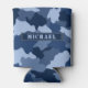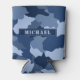 Blue Camouflage Pattern Monogram Name Can Cooler