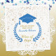Paper party napkins for that special high school or college graduation party with personalized text. Features image of a blue grad cap and laurel wreath accented with faux gold confetti. Red, black and other color groups also available in this same design