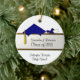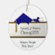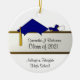 Graduation ornament gift for that special high school or college grad with custom front and back text. Features a blue cap and tied diploma.