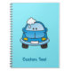 Smiling blue cartoon car with soap bubbles. Custom background color. Custom text.