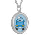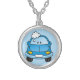 Blue car with bubbles silver plated necklace