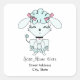 A sticker featuring an illustration of a blue cartoon poodle wearing pink bows, a black collar with pink heart, and a string of pearls. Personalize with your name and address. Look for matching items at Jill's Paperie.