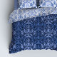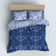 Elegant rich and ornamental shades of blue Moroccan Casbah Damask. Dark version of design on one side of Duvet with light version of design on the other.