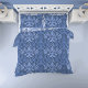 Elegant rich and ornamental shades of blue Moroccan Casbah Damask. Same pattern both sides of duvet cover.