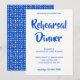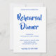 Plain white envelopes are included with paper invitations and will come to fit the invitation size you select. If you don’t need the envelopes, you may choose to not receive them by selecting the dropdown below "Envelopes" and choosing "None." If you’d like to have a design on your envelopes, you can browse all of these available envelopes to find the design that complements your Blue Casual Script Rehearsal Dinner Invitation.