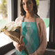 Great color and even though I ordered the kid size, it covers well enough to use during the holidays. I am not a big woman and prefer a shorter apron. I stand 5"6" and the length of the garment goes to mid-thigh. The tie straps fit well at my waist and even though there is no neck strap adjustment, the opening is plenty big enough. I am happy with the size and fit. I am sharing my apron with my 10 year old grandson, too! The color is vibrant and looks good, as shown on the website. The stitching looks strong and reinforced. Photographed is front side and back side of the apron, reinforced straps and coloring. My phone camera may not be the best at showing the details.